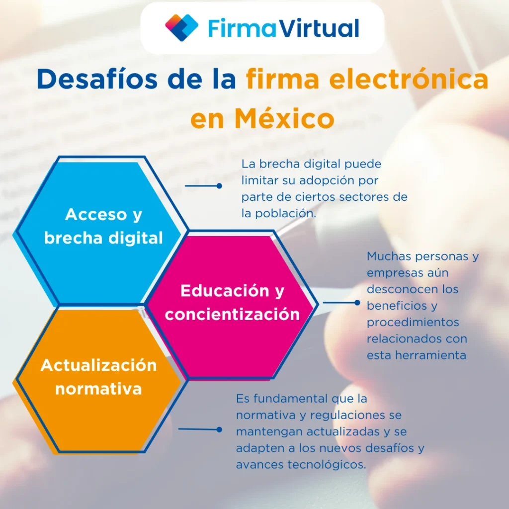 – Acceso y brecha digital: aunque la firma electrónica en México ha avanzado considerablemente, aún existen desafíos relacionados con el acceso a internet y la disponibilidad de infraestructura tecnológica en algunas regiones. La brecha digital puede limitar su adopción por parte de ciertos sectores de la población.